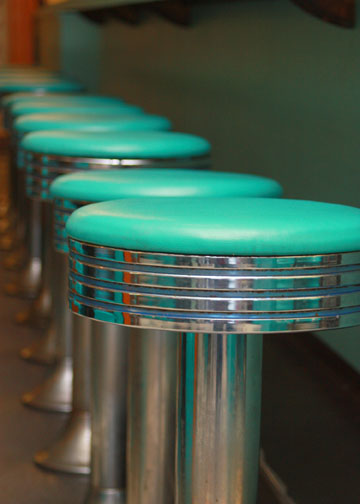 Brent’s Drugs turquoise barstools